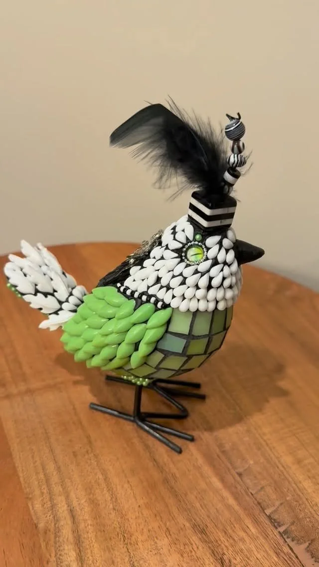 “Debra, your art is gorgeous, each and every piece of it, and your display drew me right in. Best of all was talking to you! I will cherish my mosaic bird who needs a name, and look forward to teaching my young students about mosaic art. I hope that within the next year I will have a chance to take a workshop with you!”